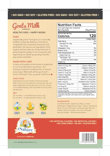Goat Milk Formula - MADE IN THE USA - Easy to Digest All Life Stages Formula (12 months and above) - Hypoallergenic - Non-GMO, Gluten FREE, Soy FREE, Heavy Metal FREE, Pesticides and Chemical FREE - G