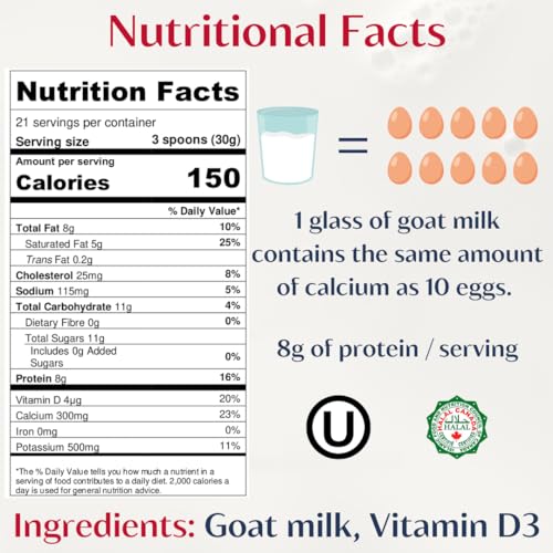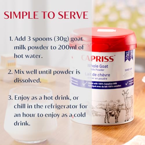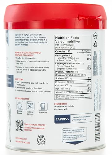 Capriss Whole Goat Milk Powder, 22.5oz | Canadian Family Farm Sourced, Vitamin D Enriched, High Protein & Calcium, A2 Milk, Easy to Digest, Gluten Free | No Antibiotics, No rBST, No Preservatives