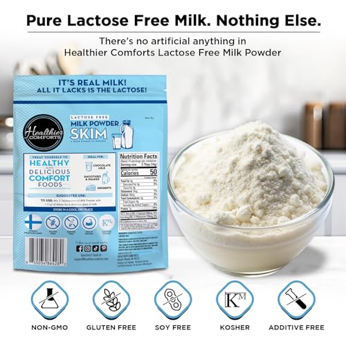 Healthier Comforts Lactose Free Skim Milk Powder | High Protein, Fat Free, Non-GMO, rBST Hormone Free, Kosher, Gluten Free, No Fillers | Baking, Coffee Creamer, Shakes| Makes 14 cups (7 oz) (7 oz)