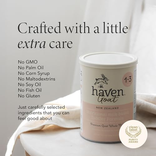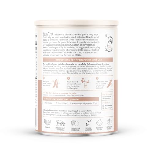 Haven Goat Toddler Formula, Grass Fed Whole Goat Milk Powder for Toddlers With Probiotics, Prebiotics, Lutein and Omega 3 Dha, Easy Digestion Formula, Non GMO, American Made, 14.1 Oz
