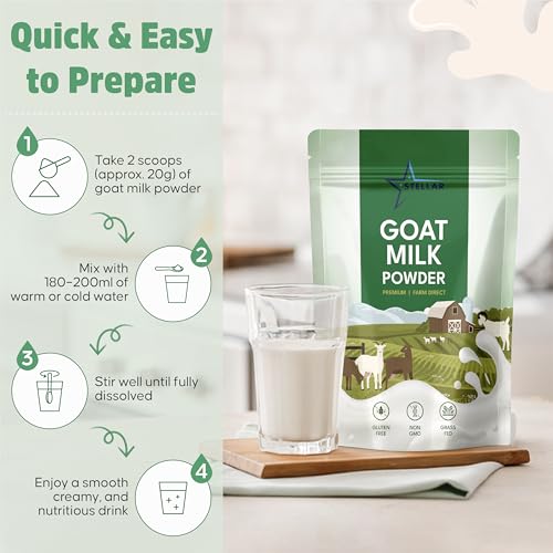 Stellar Goat Milk Powder \u2013 2 lb | Grass-Fed from Australia | Easy to Digest, High in Protein, Calcium & Probiotics | Pure, Non-GMO, Gluten-Free, Pet Friendly, No Additives